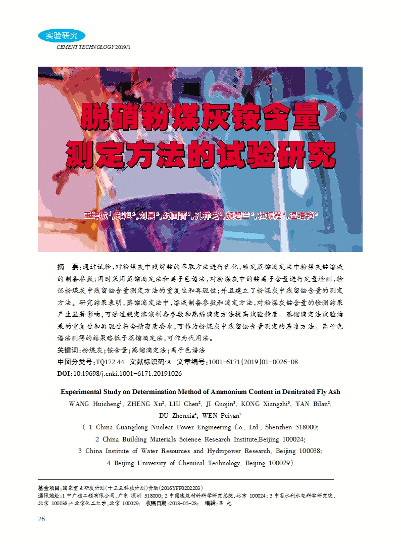 Key words:  fly ash    ammonium content    distillation titration    ion chromatography