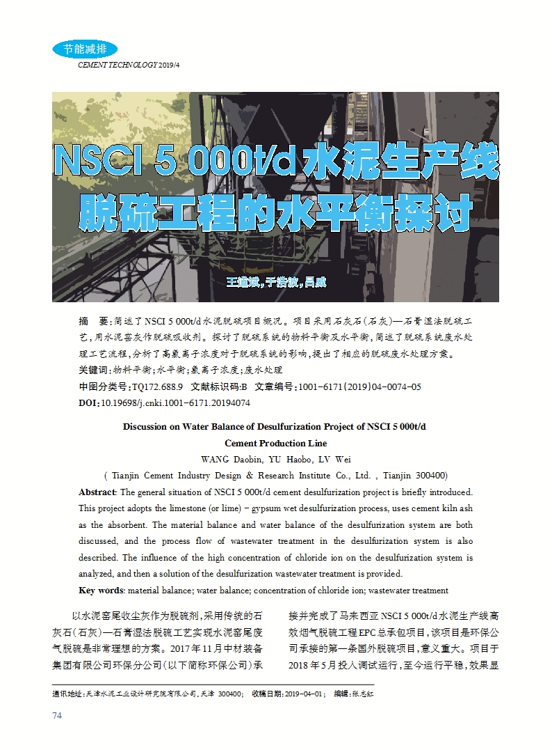 NSCI 5 000t/d水泥生产线脱硫工程的水平衡探讨