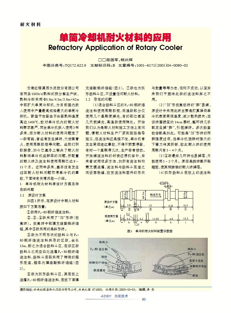 段国军, 杨兴辉. 单筒冷却机耐火材料的应用[J]. 水泥技术, 2001, 1(4): 80-81.