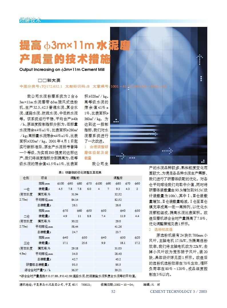 提高ϕ3m×11m水泥磨产质量的技术措施