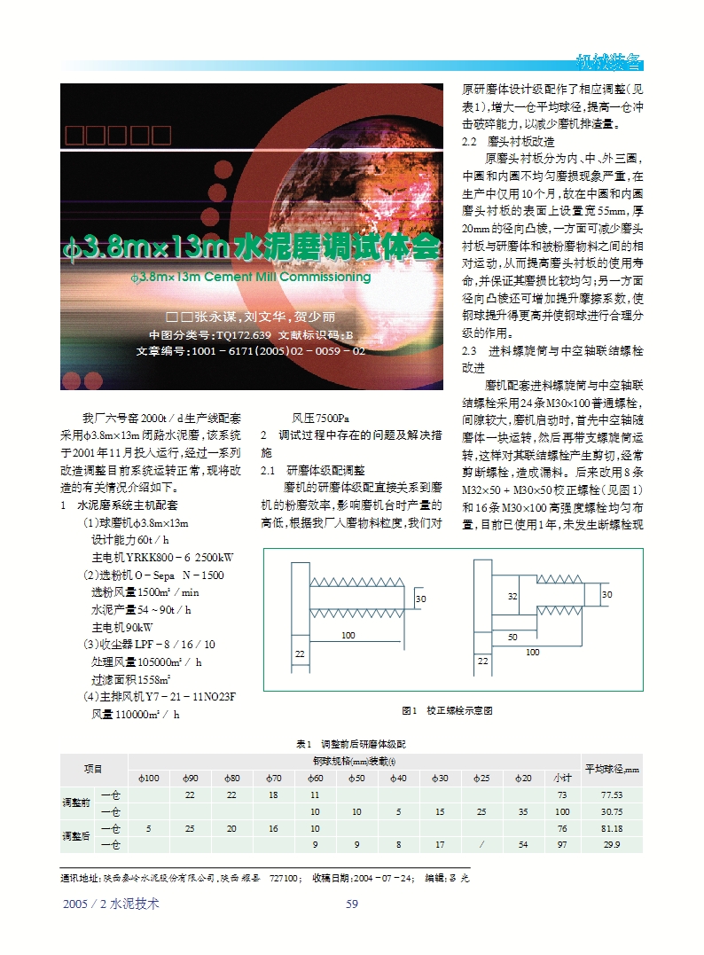 张永谋, 刘文华, 贺少丽. ϕ3.8m×13m水泥磨调试体会[J]. 水泥技术, 2005, 1(2): 59-60.