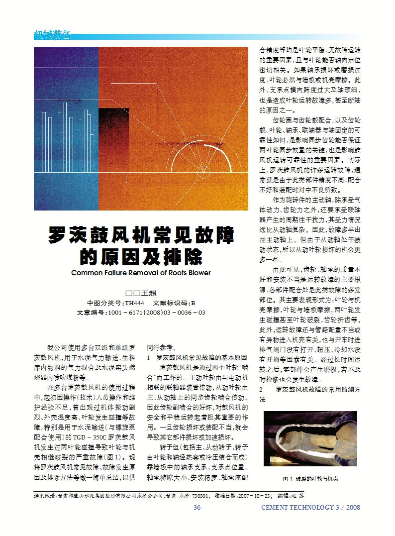 WANG Chao. Common Failure Removal of Roots Blower. Cement Technology, 2008, 1(3): 36-38.