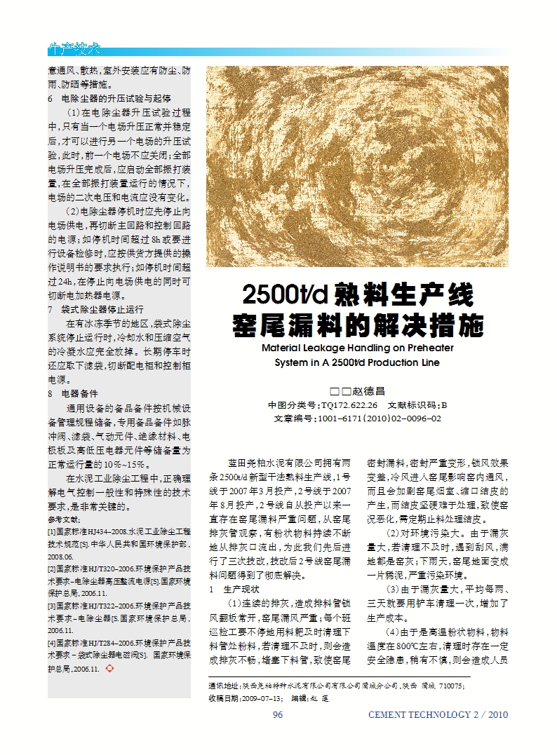 Material Leakage Handling on Preheater System in A 2500t/d Production Line