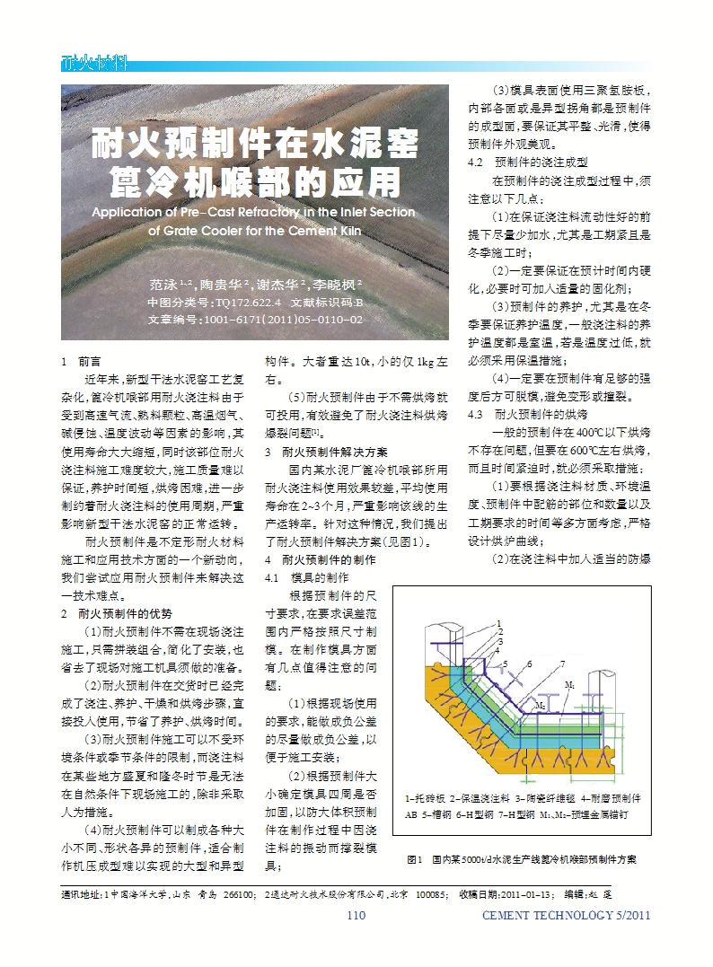 Application of Pre-Cast Refractory in the Inlet Section of Grate Cooler for the Cement Kiln