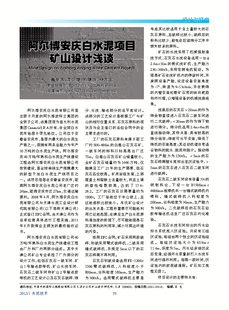阿尔博安庆白水泥项目矿山设计浅谈