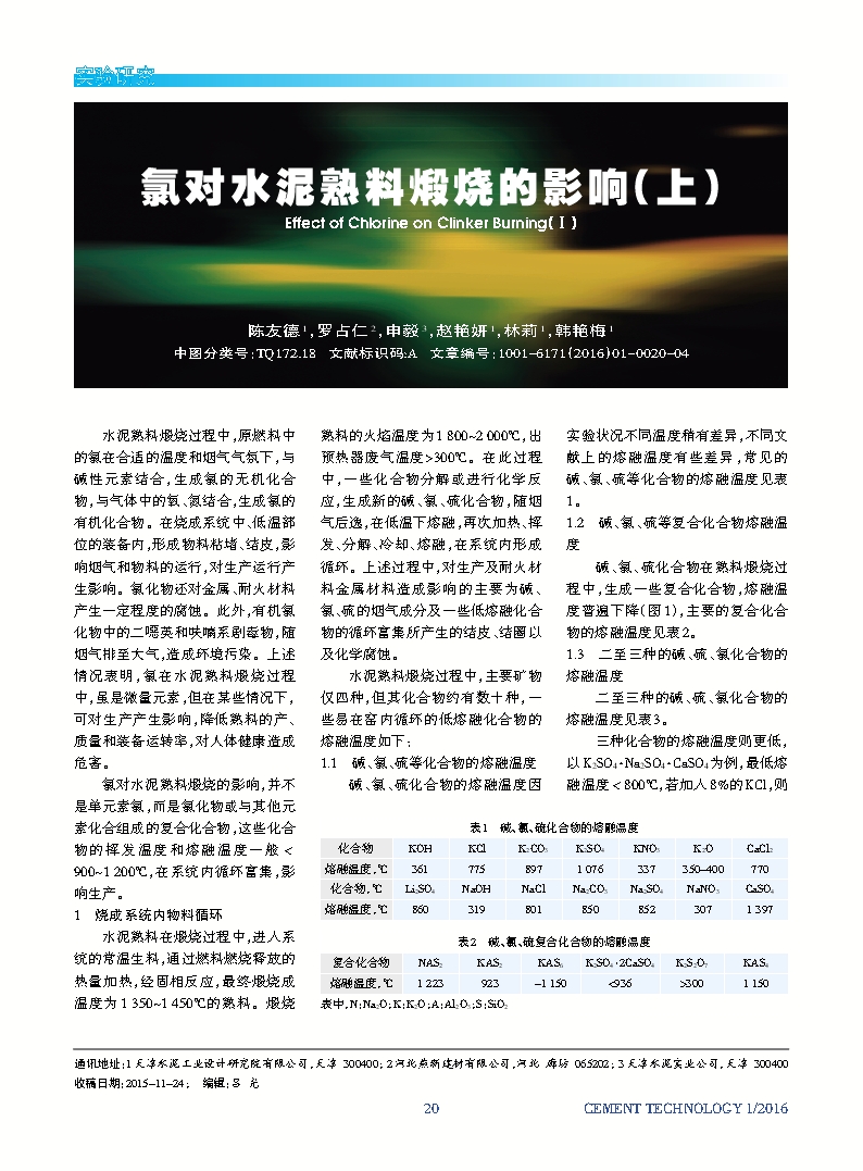 CHEN Youde, LUO Zhanren, SHEN Yi, ZHAO Yanyan, LIN Li, HAN Yanmei. Effect of Chlorine on Clinker Burning(Ⅰ). Cement Technology, 2016, 1(1): 20-23.