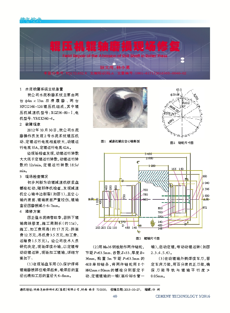 耿文海, 杨小勇. 辊压机辊轴磨损现场修复[J]. 水泥技术, 2016, 1(3): 40-41.