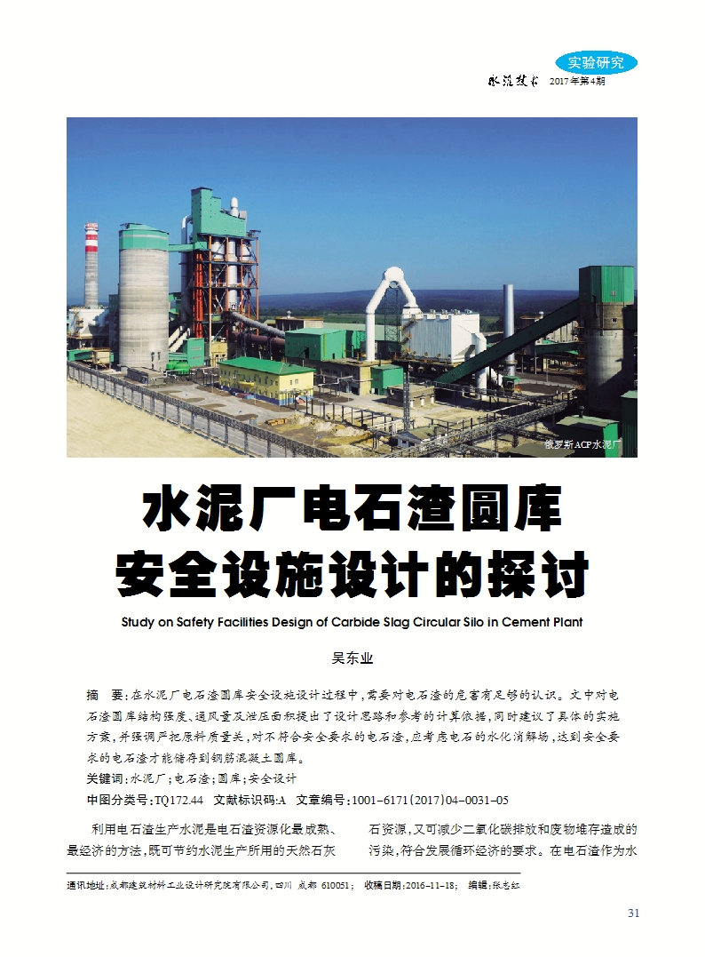 摘要 在水泥厂电石渣圆库安全设施设计过程中,需要对电石渣的危害有足够的认识。文中对电石渣圆库结构强度、通风量及泄压面积提出了设计思路和参考的计算依据,同时建议了具体的实施方案,并强调严把原料质量关,对不符合安全要求的电石渣,应考虑电石的水化消解场,达到安全要求的电石渣才能储存到钢筋混凝土圆库。