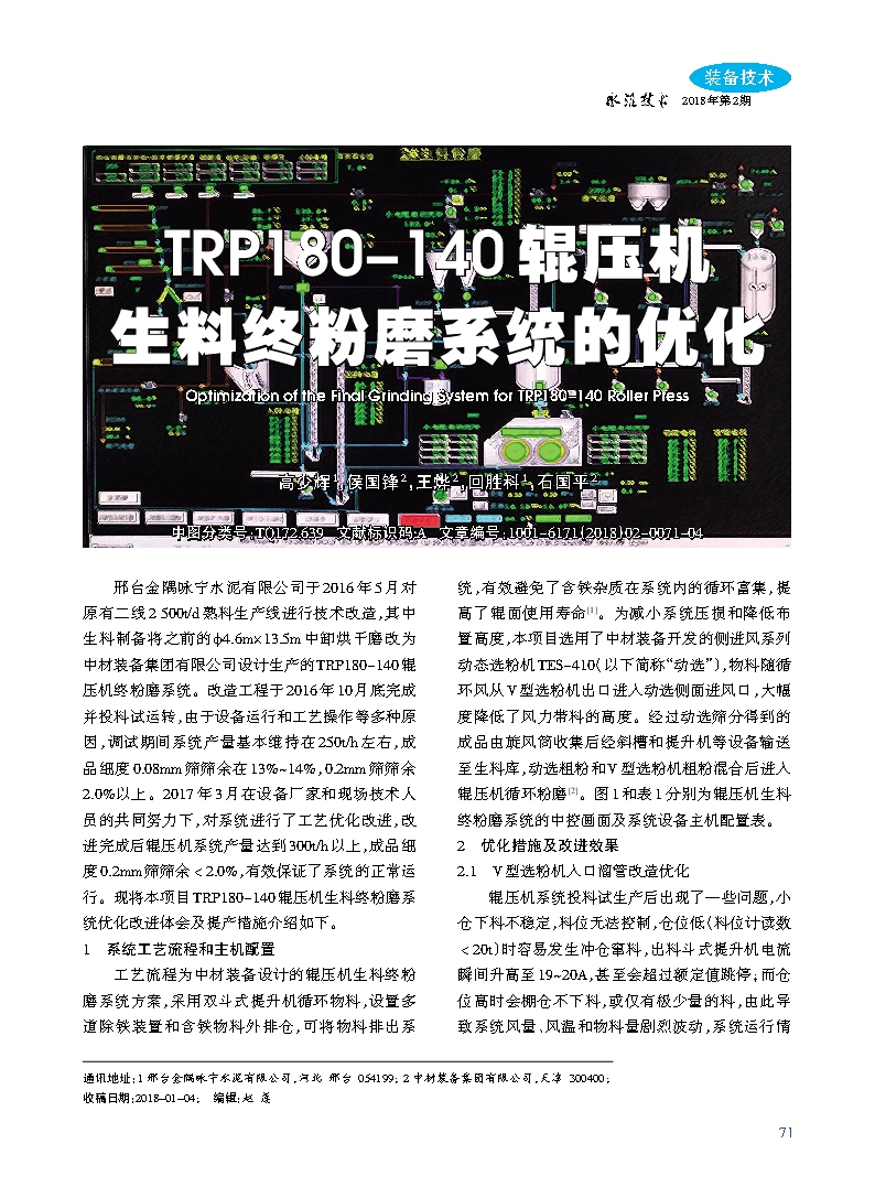 Optimization of the Final Grinding System for TRP180-140 Roller Press