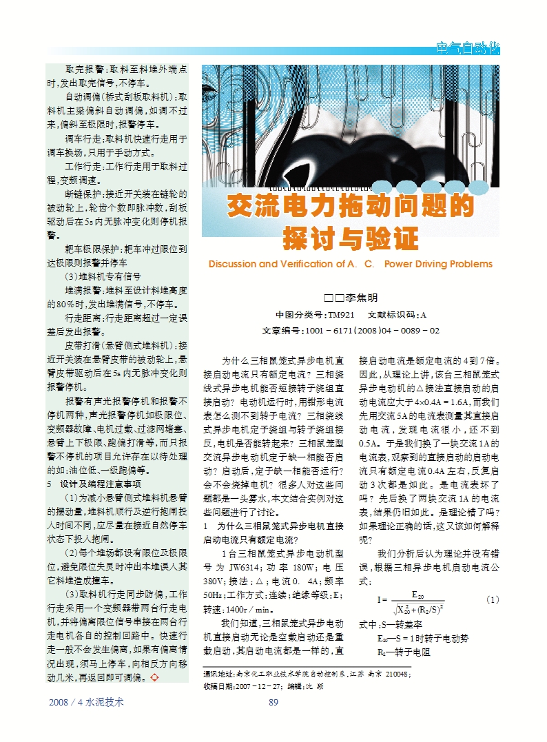 LI Jiaoming. Discussion and Verification of A.C. Power Driving Problems. Cement Technology, 2008, 1(4): 89-90.