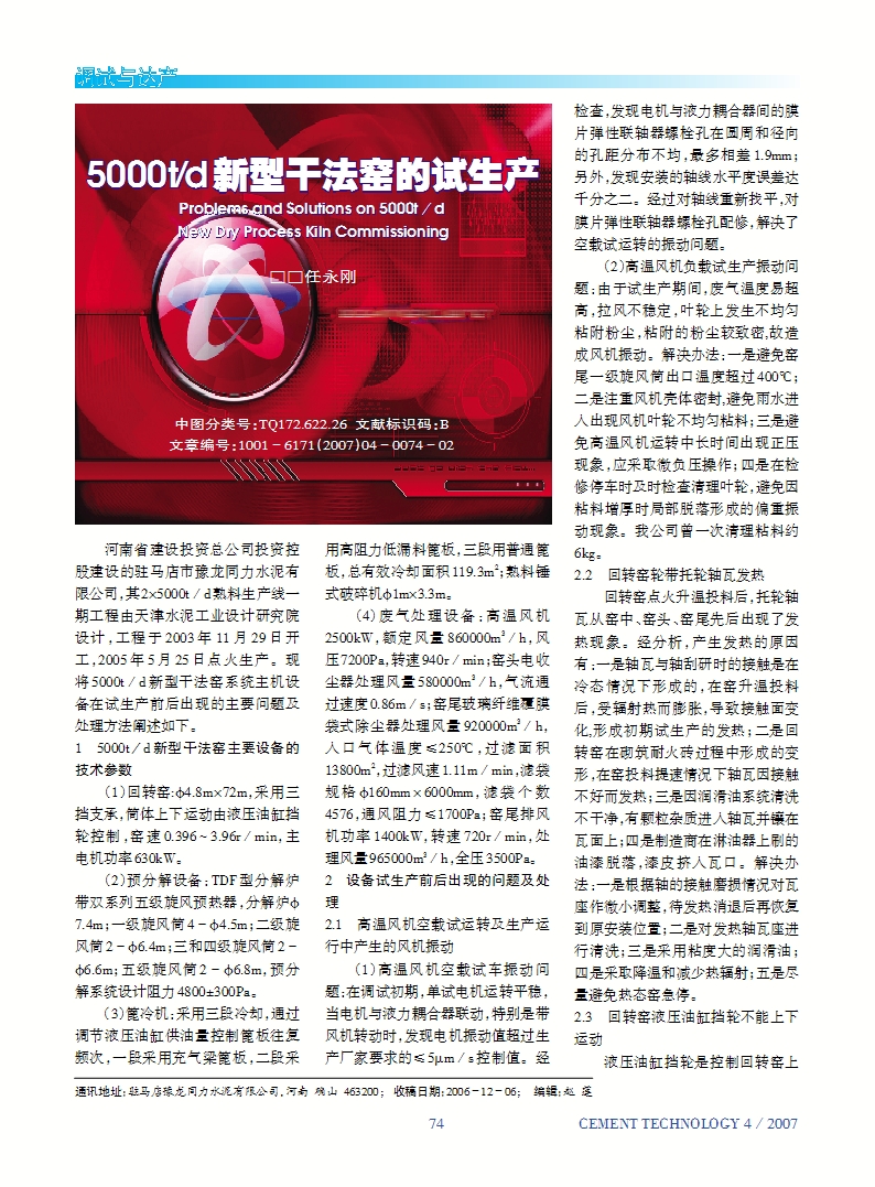 任永刚. 5000t/d新型干法窑的试生产[J]. 水泥技术, 2007, 1(4): 74-75.