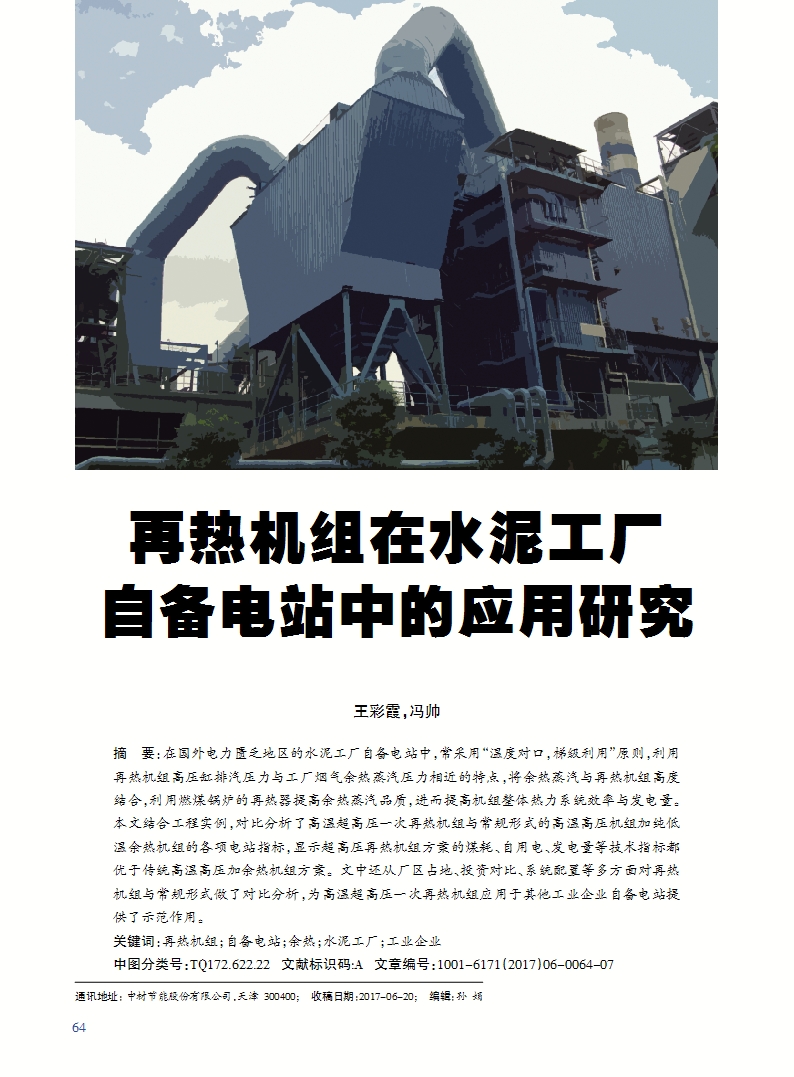 王彩霞, 冯帅. 再热机组在水泥工厂自备电站中的应用研究[J]. 水泥技术, 2017, 1(6): 64-70.