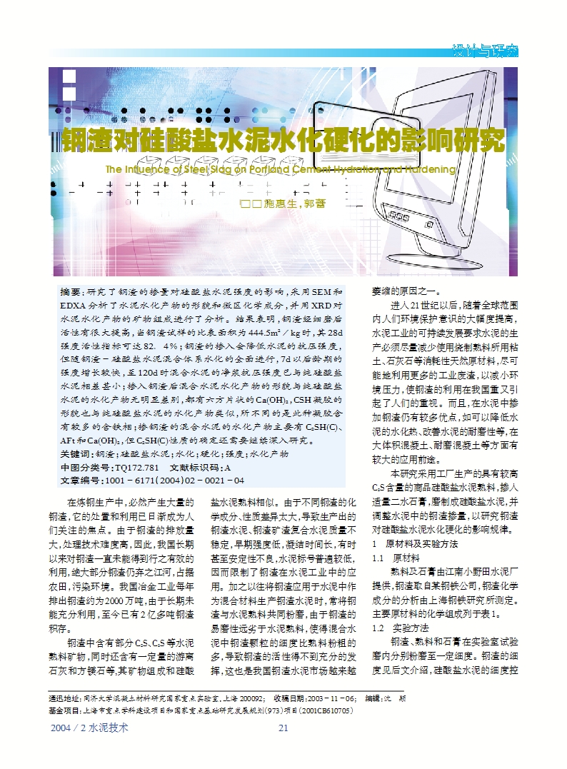 施惠生, 郭蕾. 钢渣对硅酸盐水泥水化硬化的影响研究[J]. 水泥技术, 2004, 1(2): 21-24.