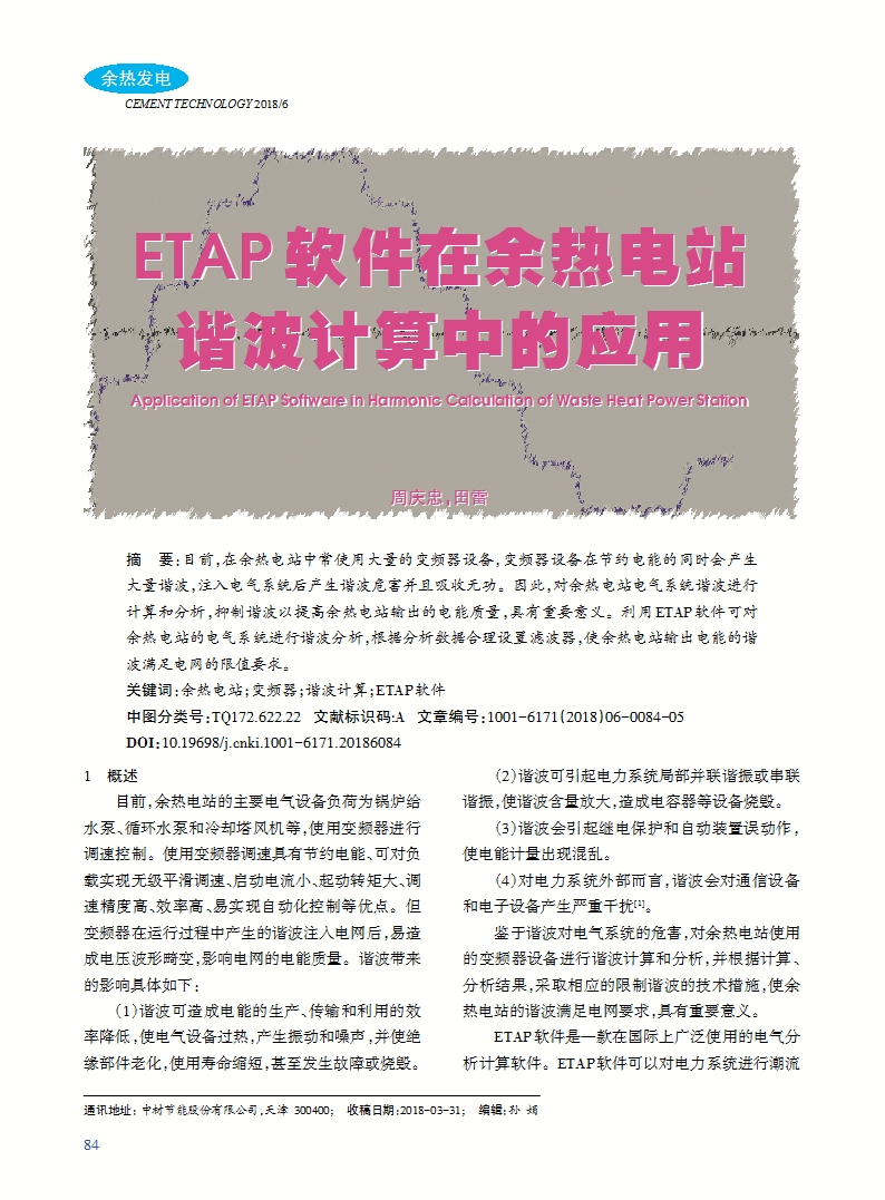 | Application of ETAP Software in Harmonic Calculation of Waste Heat Power Station |