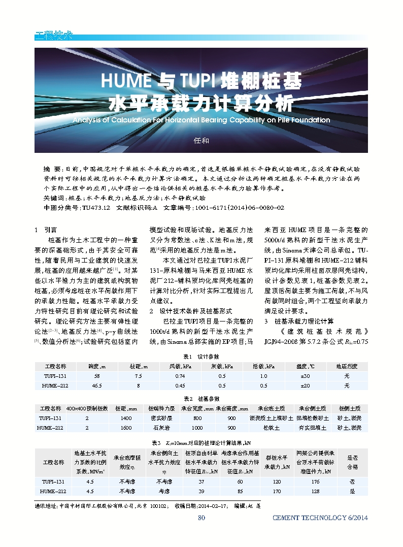 HUME与TUPI堆棚桩基水平承载力计算分析