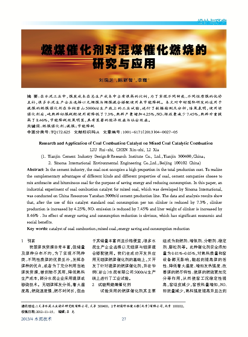 LIU Rui-zhi, CHEN Xin-zhi, LI Xia. Research and Application of Coal Combustion Catalyst on Mixed Coal Catalytic Combustion. Cement Technology, 2013, 1(4): 27-30.
