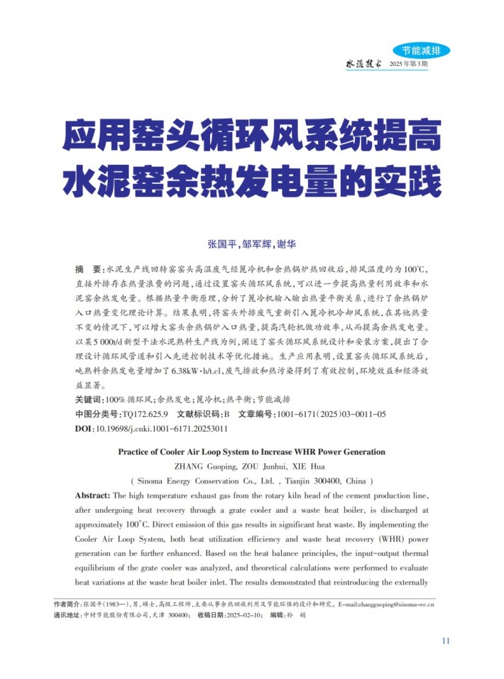 Cement Technology, 2025, 1(3): 11-15    doi: 10.19698/j.cnki.1001-6171.20253011