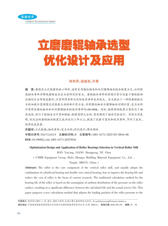 Optimization Design and Application of Roller Bearings Selection in Vertical Roller Mill