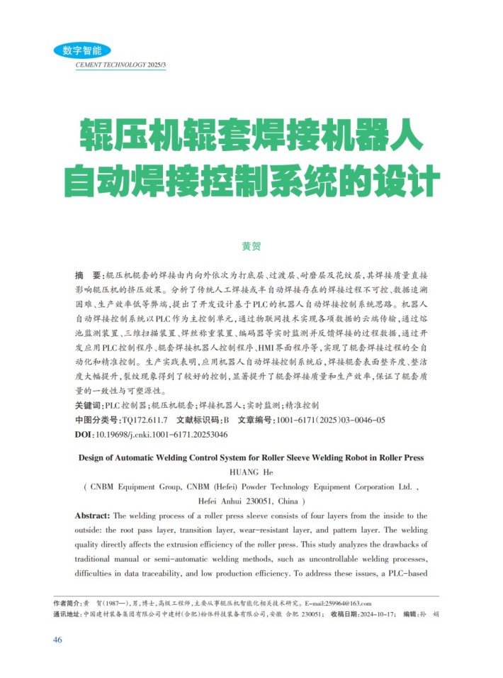 Design of Automatic Welding Control System for Roller Sleeve Welding Robot in Roller Press