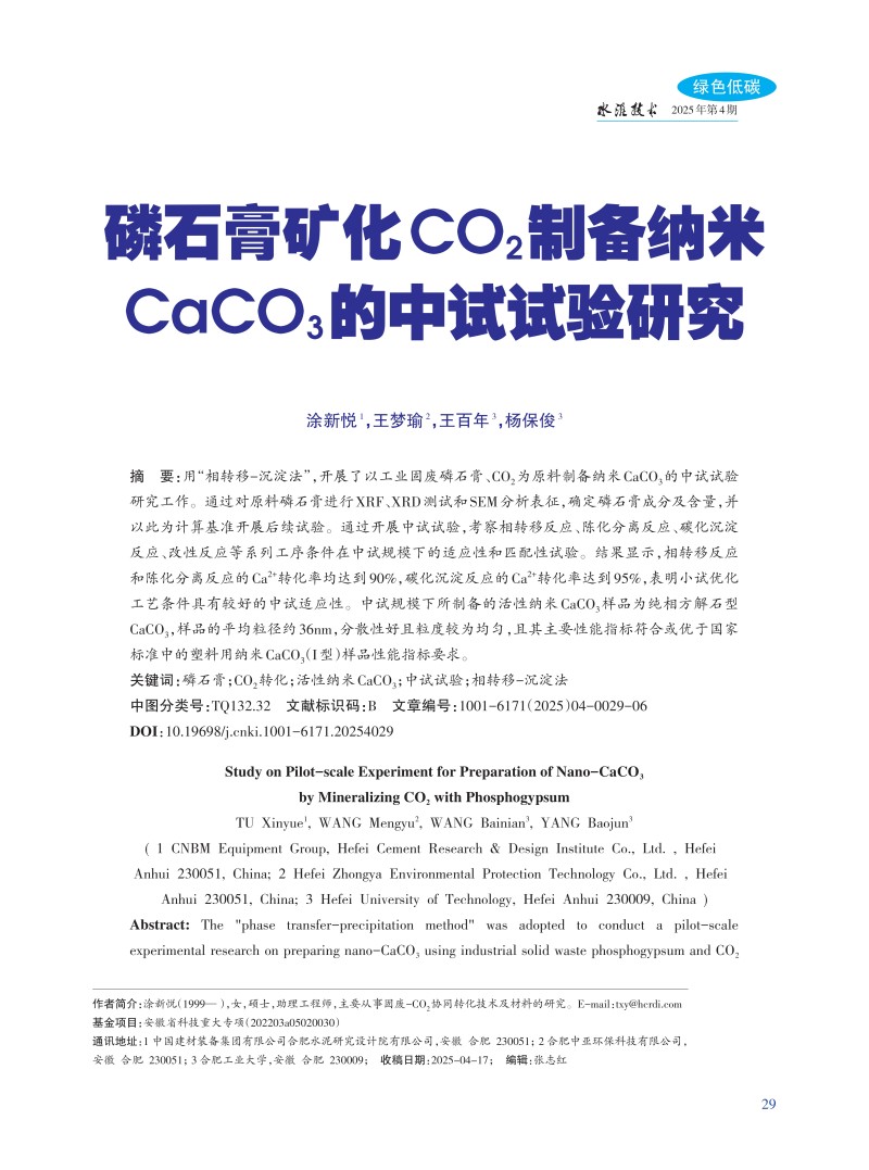 磷石膏矿化CO2制备纳米CaCO3的中试试验研究 " /> 磷石膏矿化CO2制备纳米CaCO3的中试试验研究 " /> Study on Pilot-scale Experiment for Preparation of Nano-CaCO3 " /> <p class="MsoNormal"> Study on Pilot-scale Experiment for Preparation of Nano-CaCO<sub>3</sub>